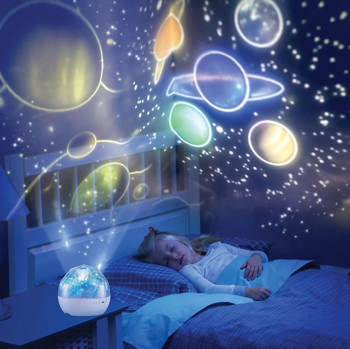 Vali erinevate valgusrežiimide, värvide ja projitseeritavate kujundite vahel, sh planeedid, tähed ja ookeaniloomad.