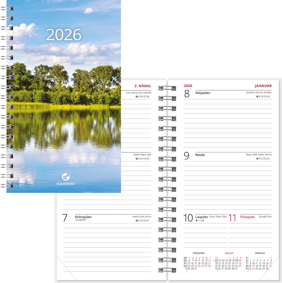 Nädalajaotusega spiraalköites kalendri sisu, lk. mõõt 93×170 mm. Kalendaarium sisaldab riigipühi, riiklikke ja rahvakalendri tähtpäevi, lipupäevi, nimepäevi, 42 riigi pühi lühenditena, päikese tõusu ja loojangu aegu, kuu faase, aastaaegade alguseid, käesoleva ja järgneva aasta plaane, aasta tabelkalendreid, foneetilisi tähestikke.