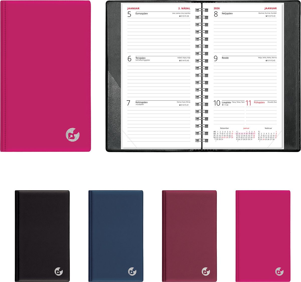 Plastkaante ja nädalajaotusega spiraalköites kalender, lk. mõõt 93×170 mm. Kalendaarium sisaldab riigipühi, riiklikke ja rahvakalendri tähtpäevi, lipupäevi, nimepäevi, 42 riigi pühi lühenditena, päikese tõusu ja loojangu aegu, kuu faase, aastaaegade alguseid, käesoleva ja järgneva aasta plaane, aasta tabelkalendreid, foneetilisi tähestikke.